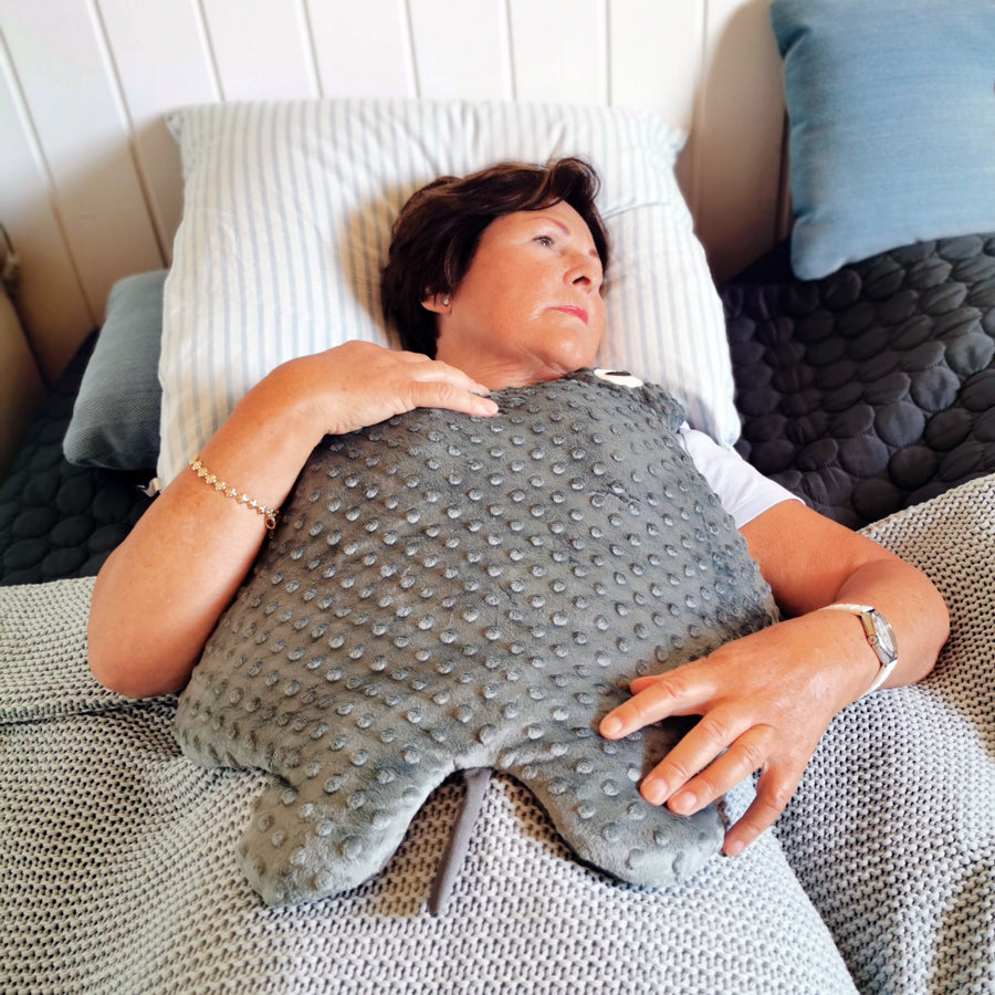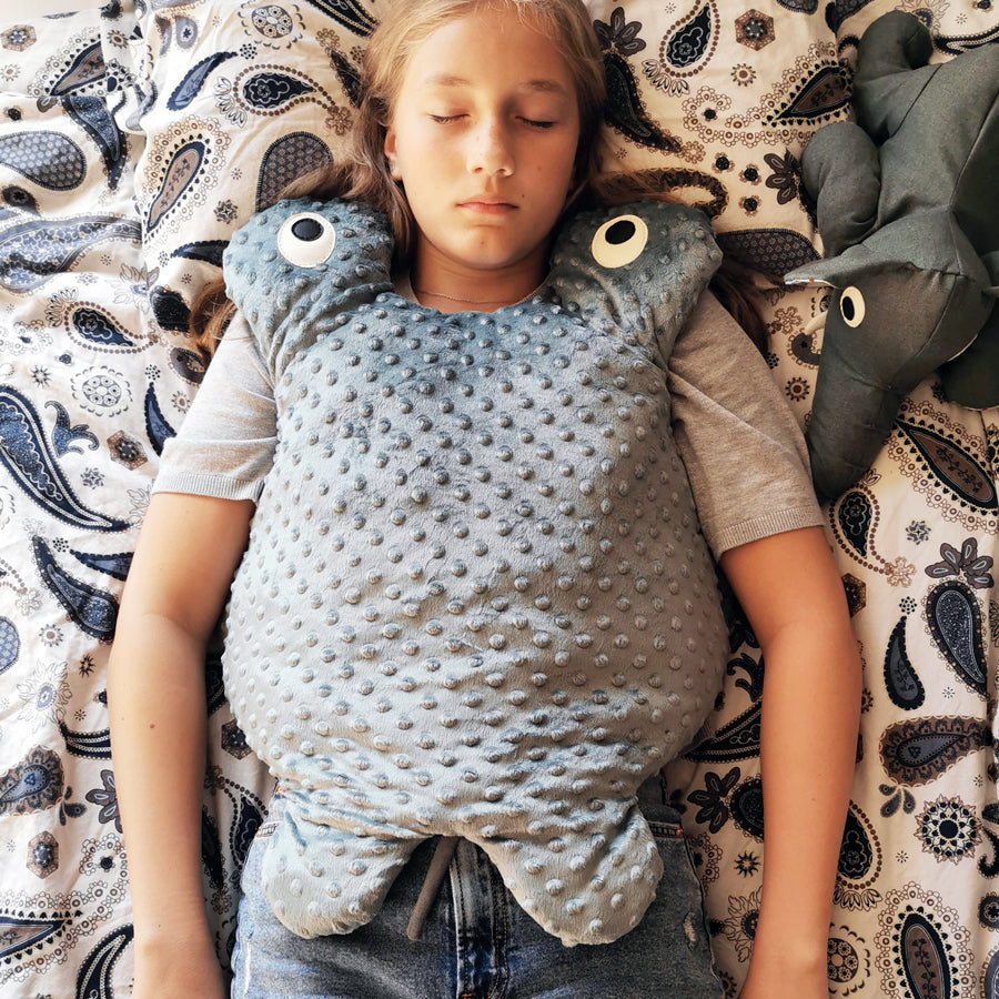 Nella foto puoi vedere la nostra "Large Manta", ma indipendentemente dalla dimensione scelta, la nostra coperta ponderata fornirà una migliore sensazione di benessere e comfort.