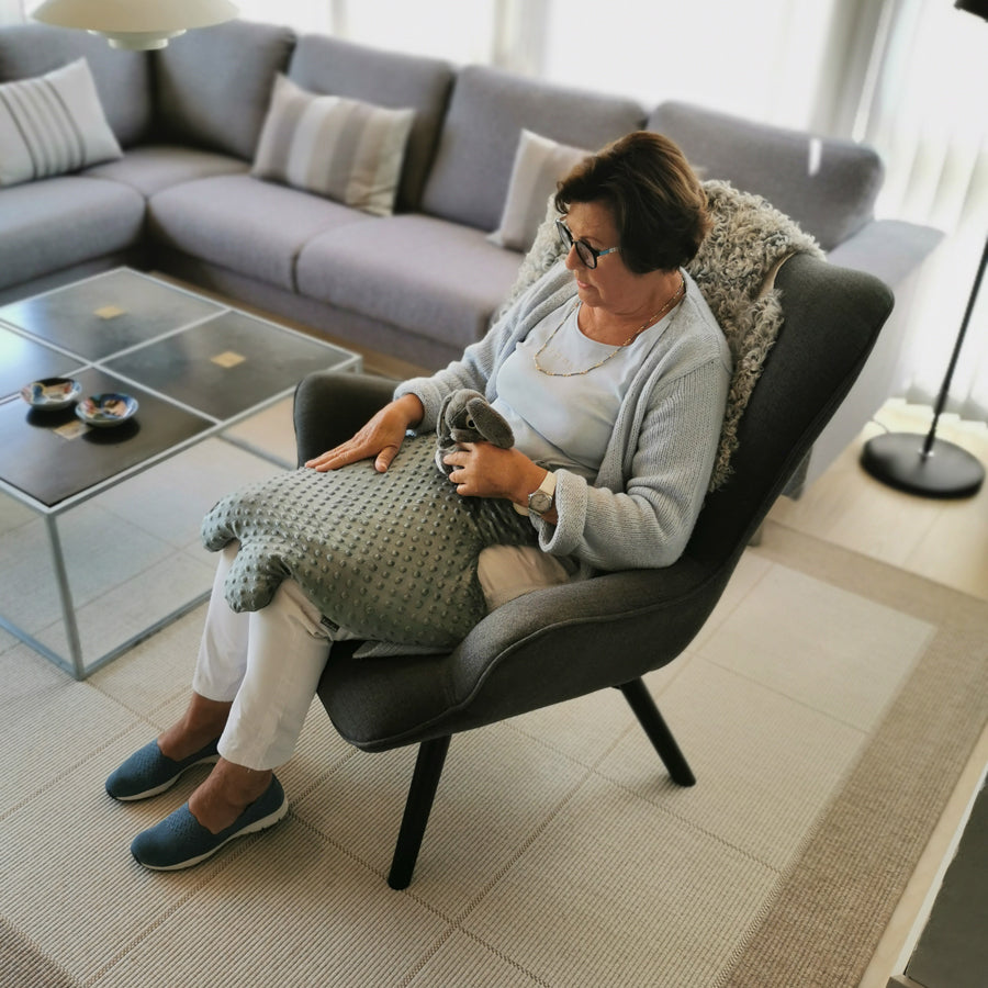 Manta è stato creato per calmare e fornire una sensazione di vicinanza. La nostra innovativa coperta ponderata viene semplicemente posizionata sopra la persona, le ali della Manta avvolgono il corpo per creare un profondo senso di sicurezza. Il materiale morbido e lussuoso è piacevole al tatto e stimola il senso tattile per un comfort extra.