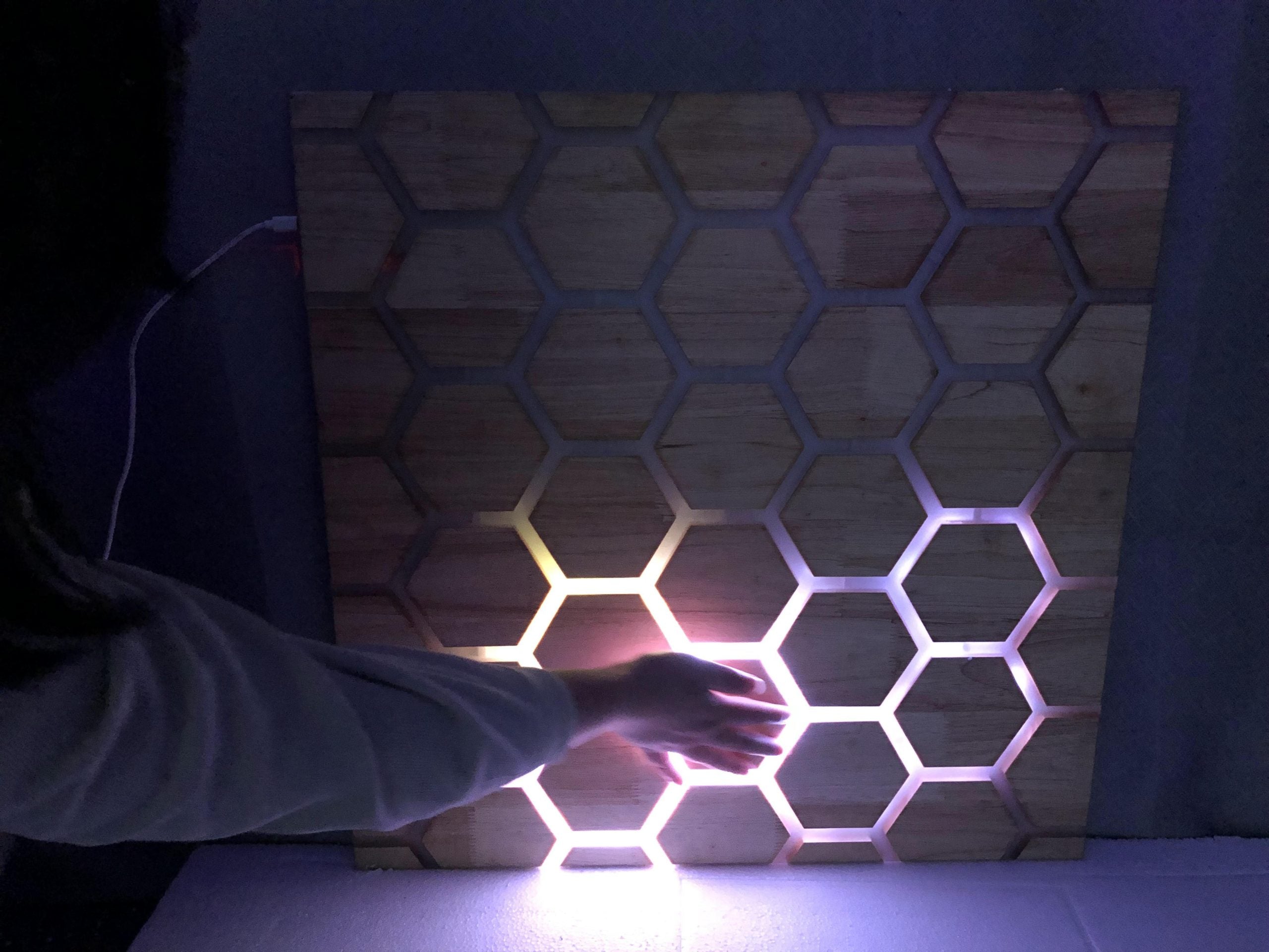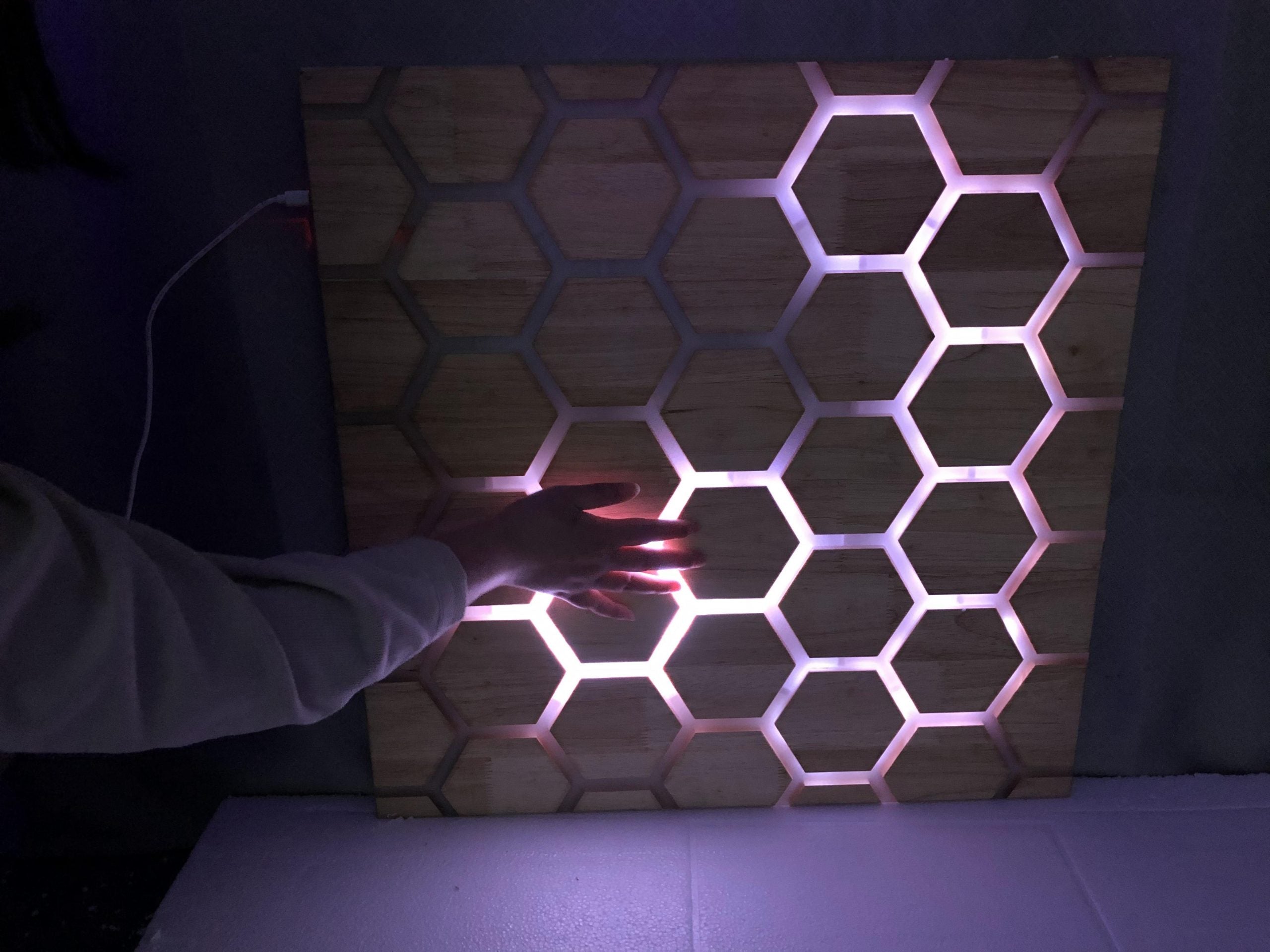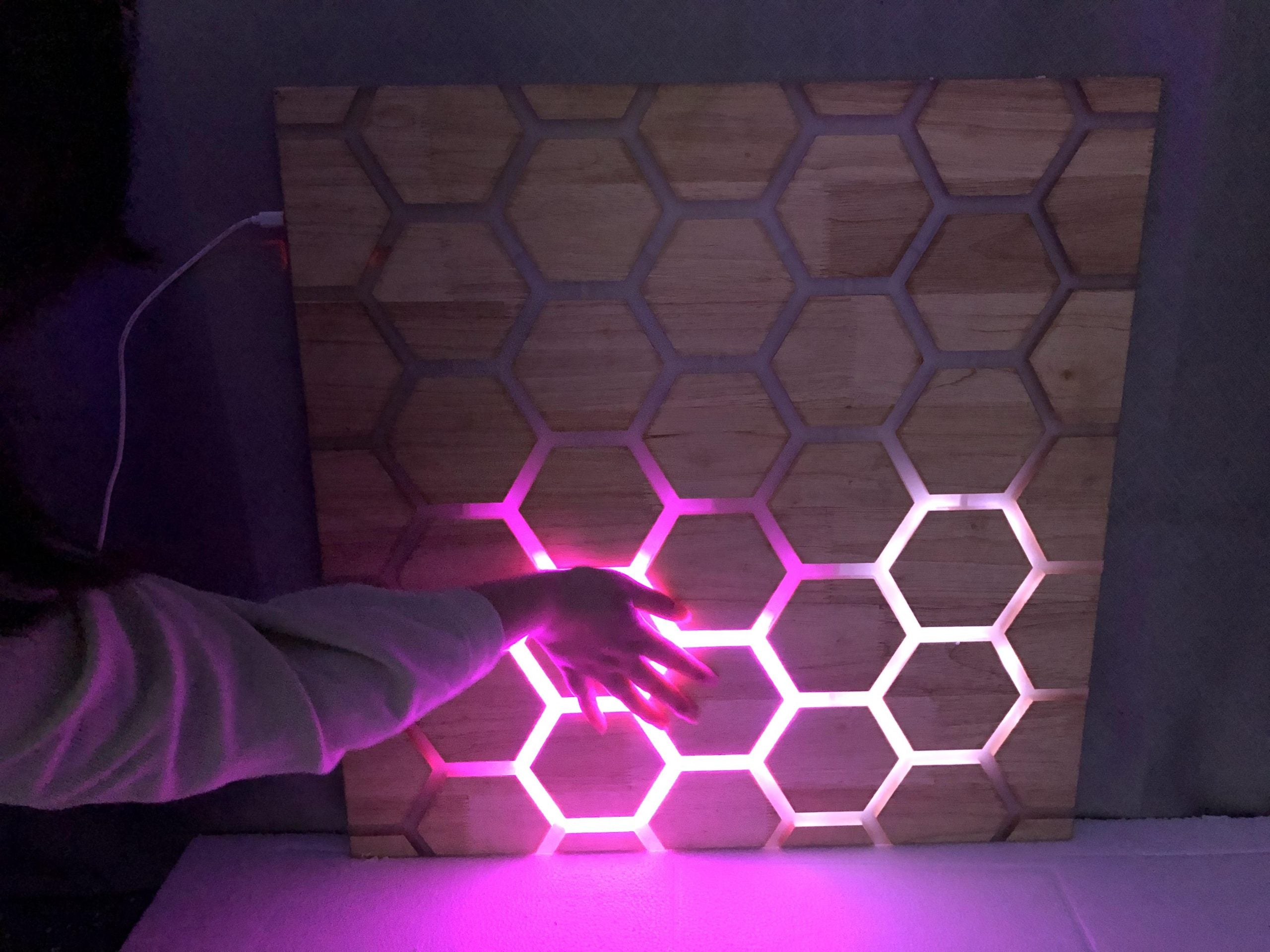 Pannello interattivo Nido D'Ape Touch: ti aspetta un'esperienza sensoriale unica. Fai semplicemente scorrere la mano sui motivi a forma di pettine per assistere a un'interazione accattivante di luci e colori in movimento. Questa funzione interattiva non solo coinvolge i sensi, ma aggiunge anche un tocco artistico a qualsiasi spazio. Esalta il tuo ambiente con la fusione perfetta di tocco, movimento e tonalità vibranti, creando un'esperienza visiva dinamica sulla tua parete