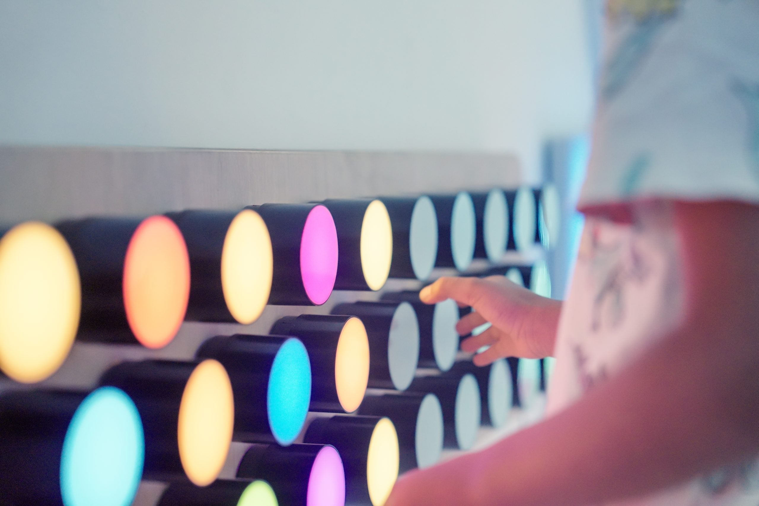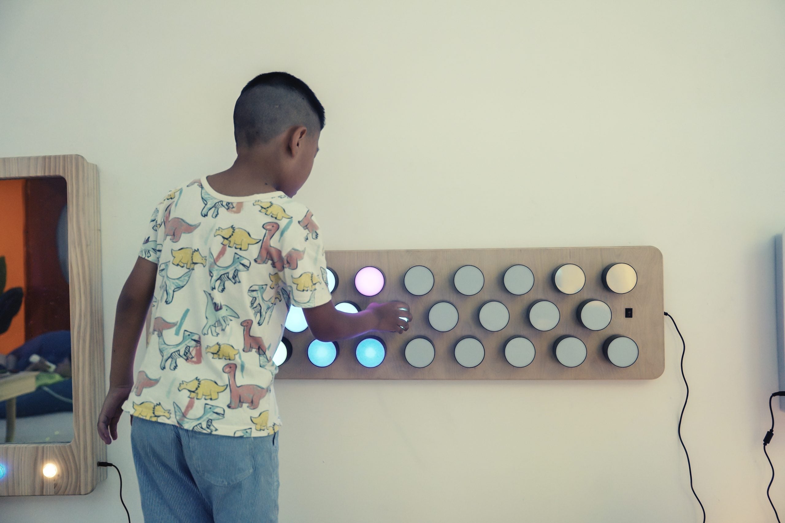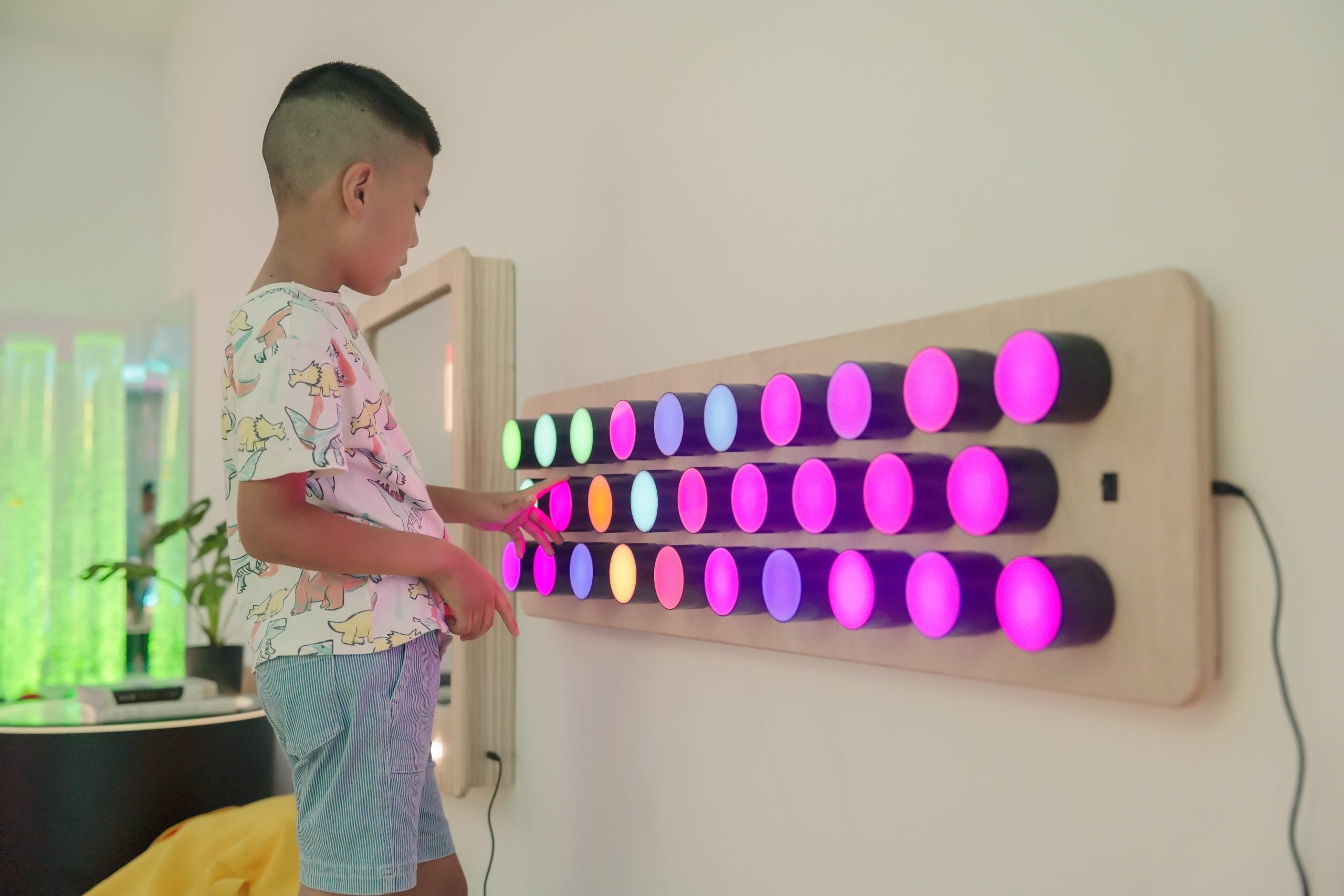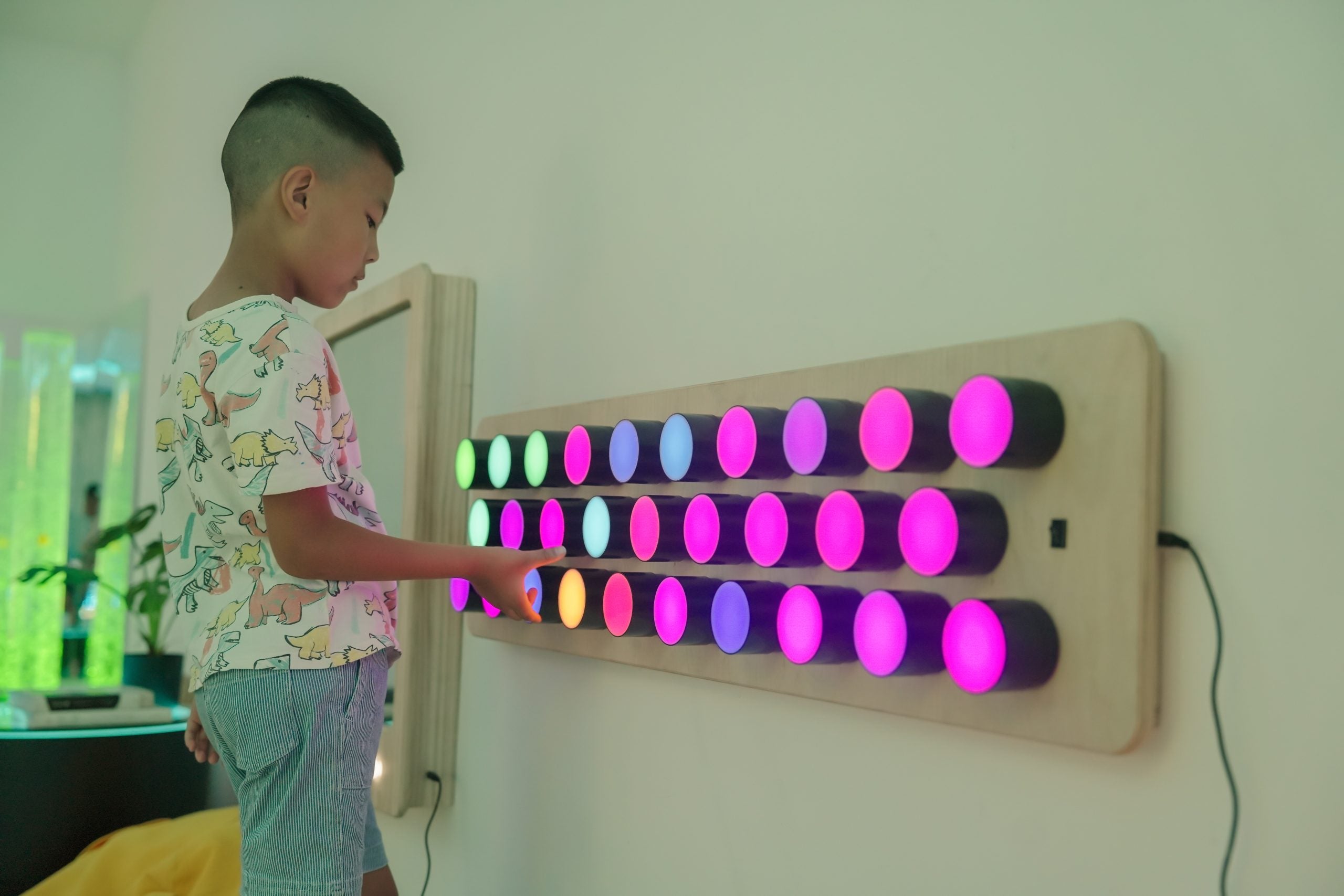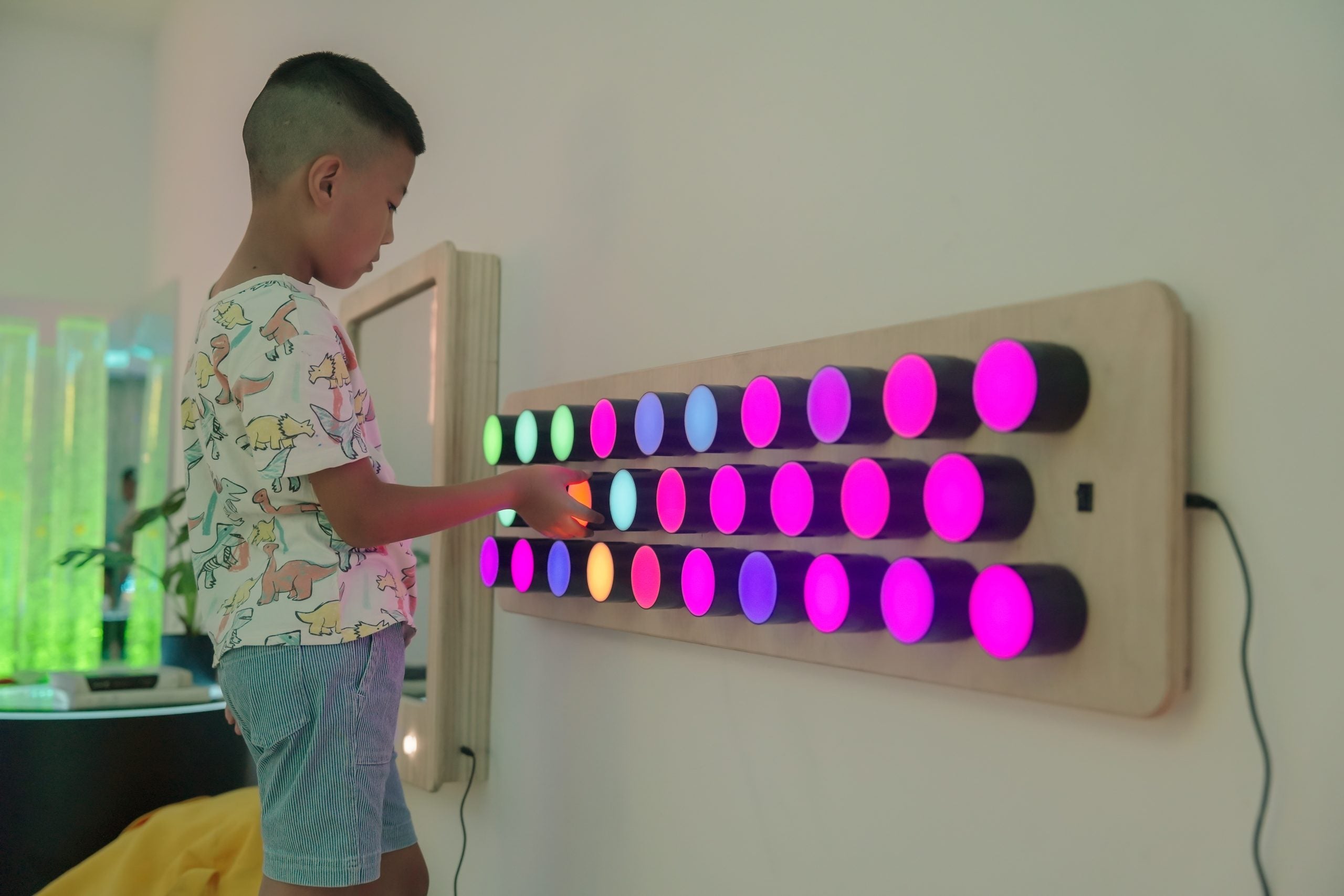 Questo pannello luminoso è stato creato per integrarsi perfettamente nel tuo spazio, trasformandolo in un rifugio sensoriale senza invadere lo spazio sul pavimento. Il funzionamento semplice invita gli utenti a ruotare le manopole, svelando un gioco continuo di colori che promette ore di piacere e stimolazione visiva.