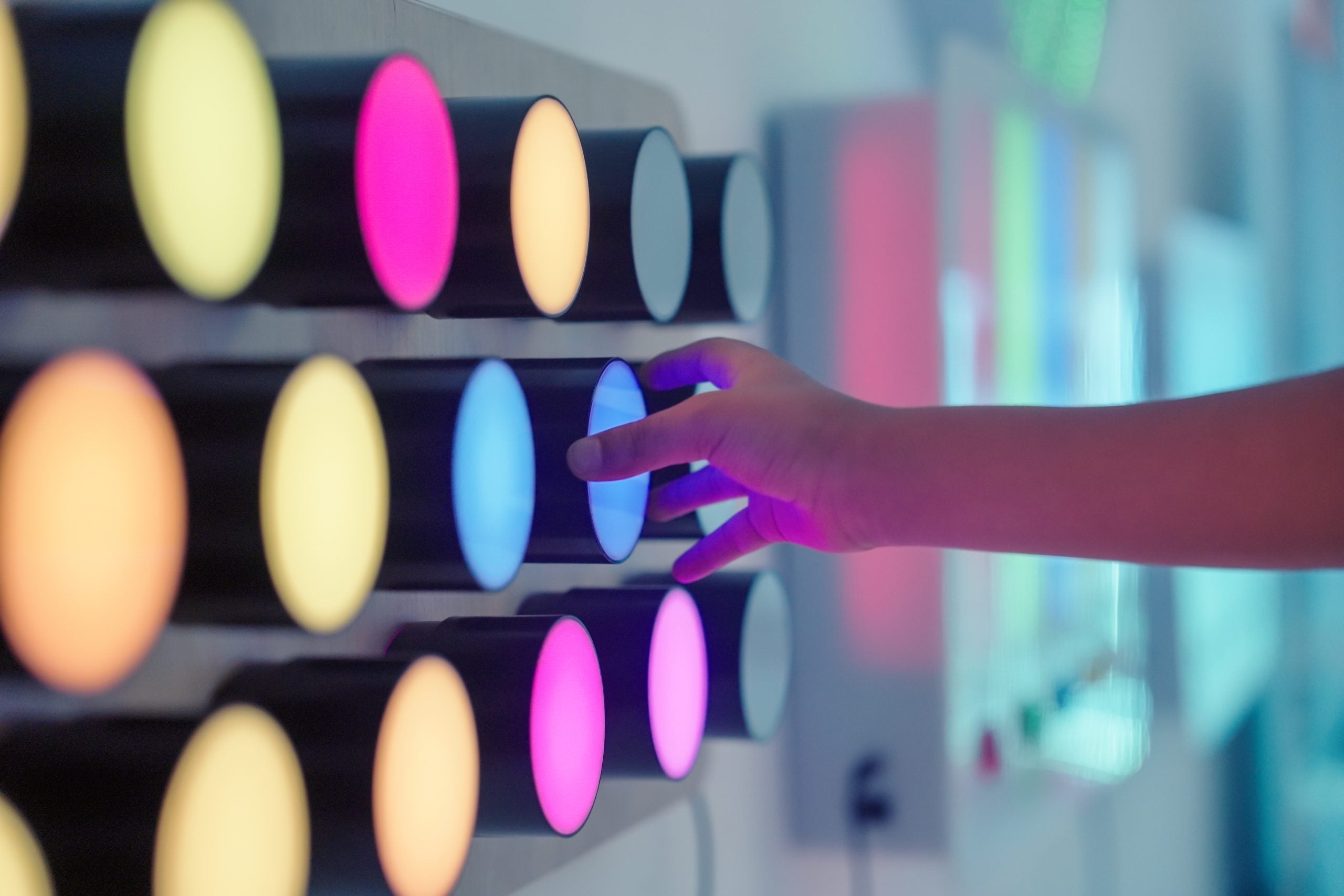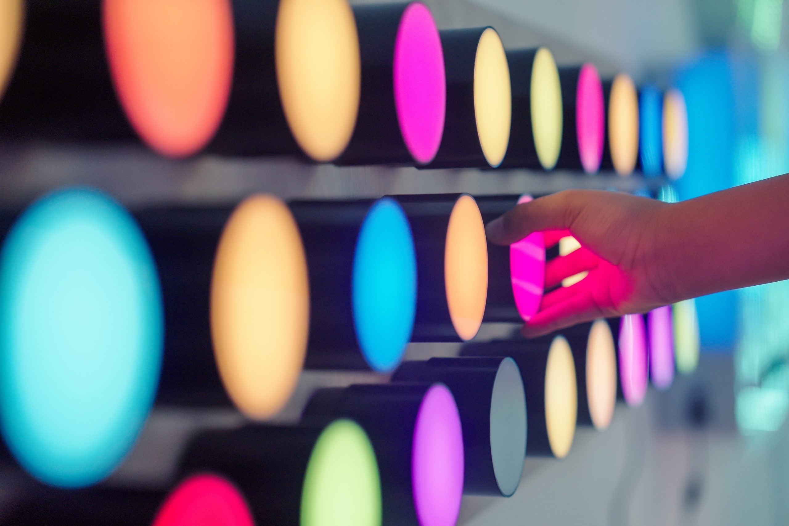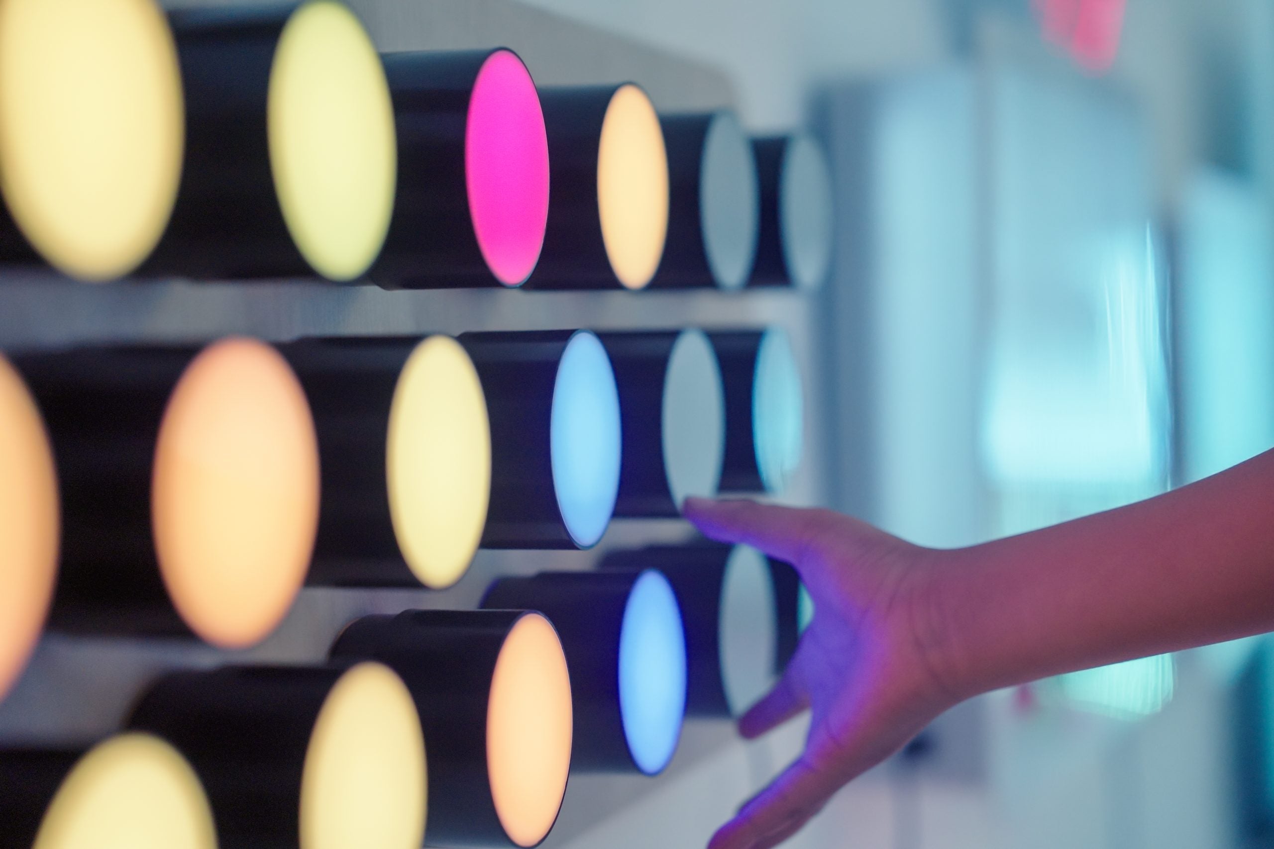Pannello luminoso a spettro cromatico rotante è perfetto per qualsiasi parete. Basta ruotare le manopole e guardare come cambiano colore.