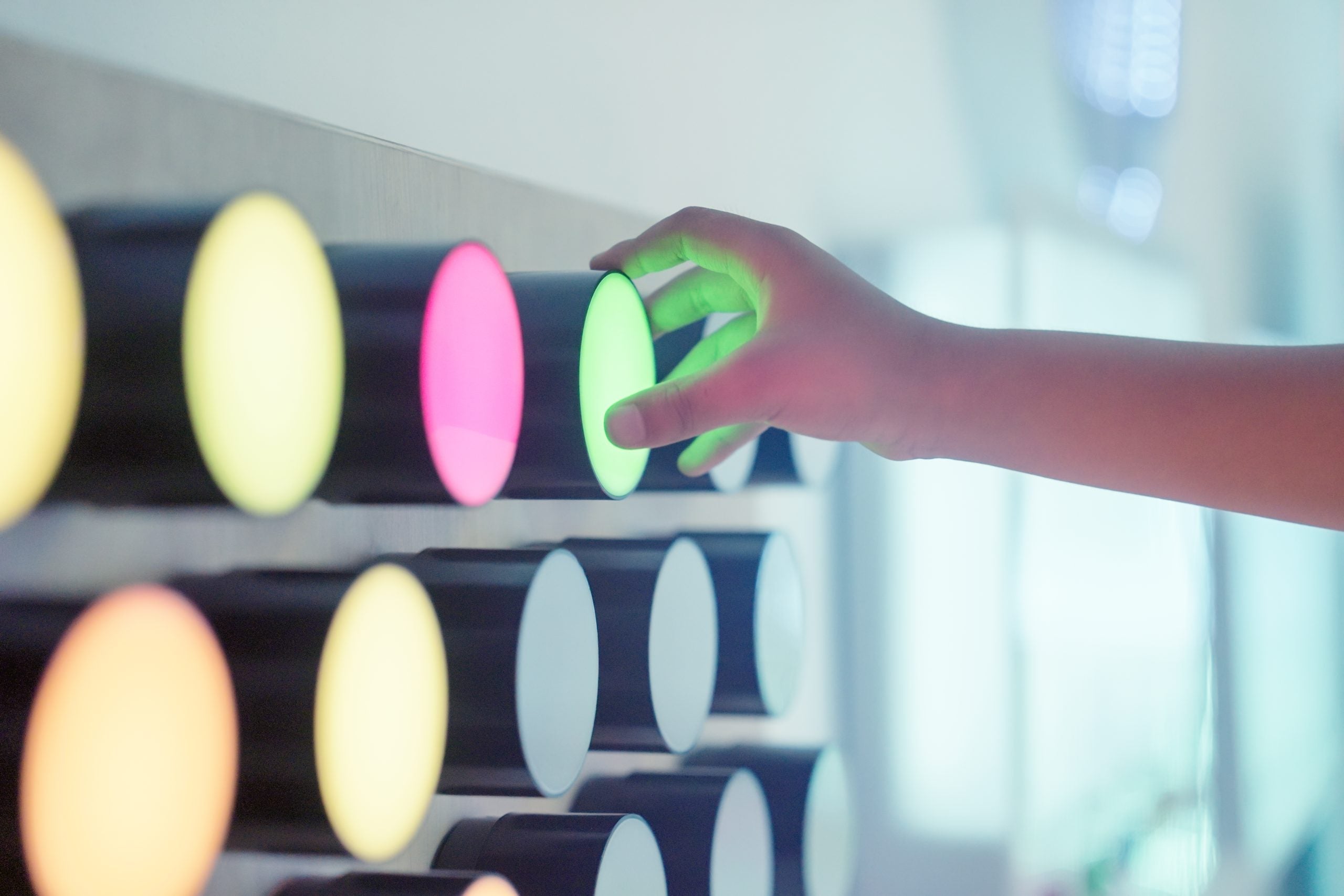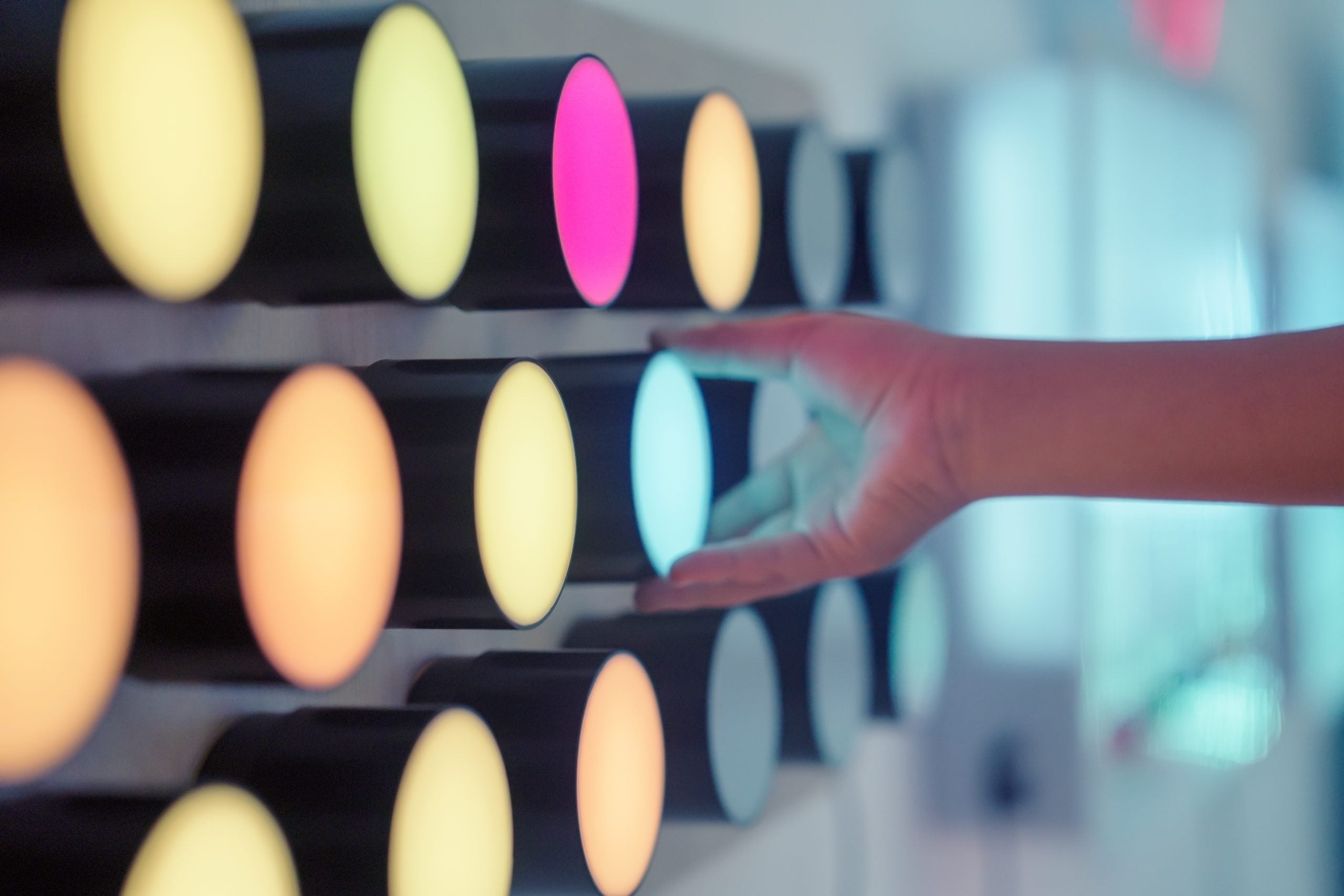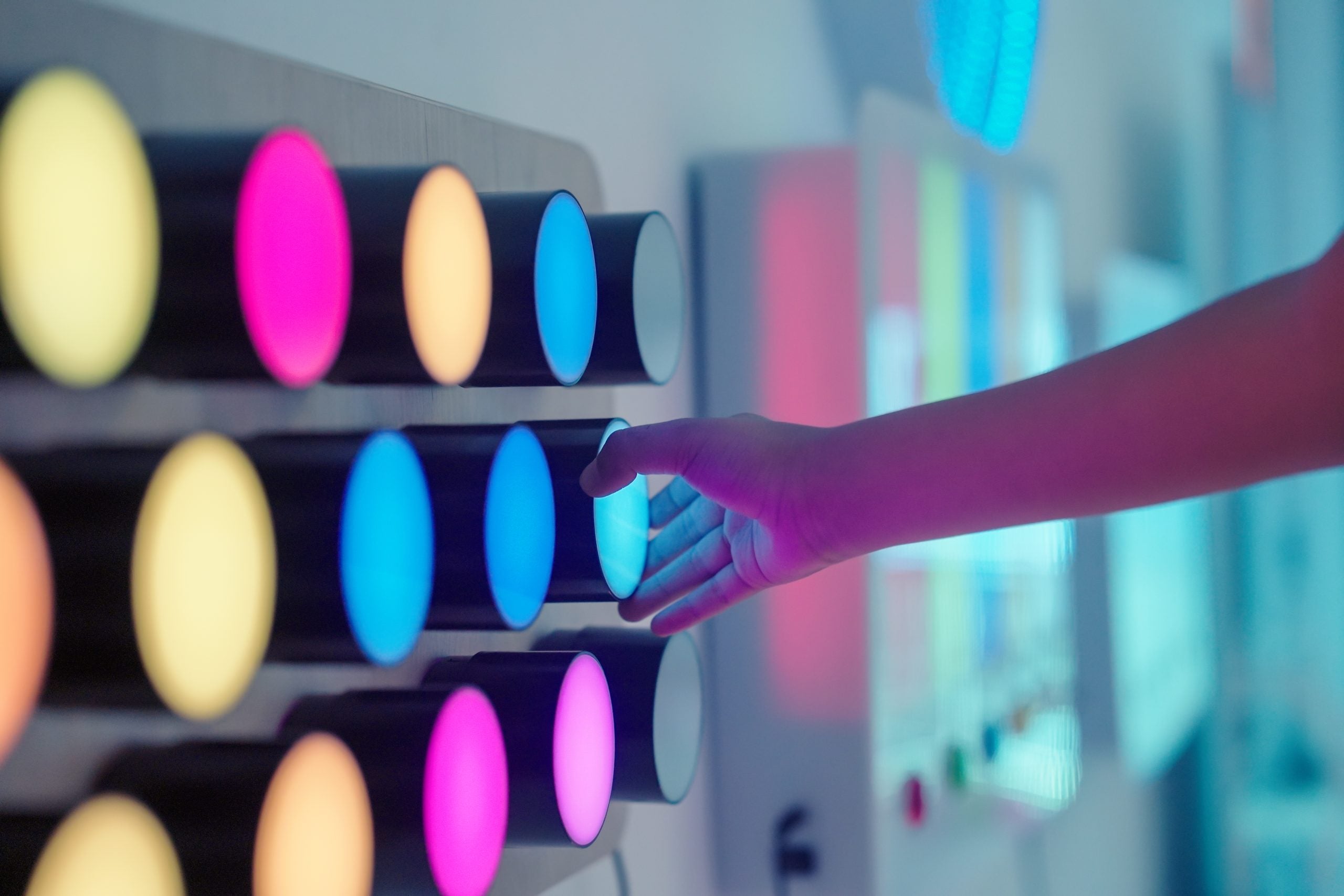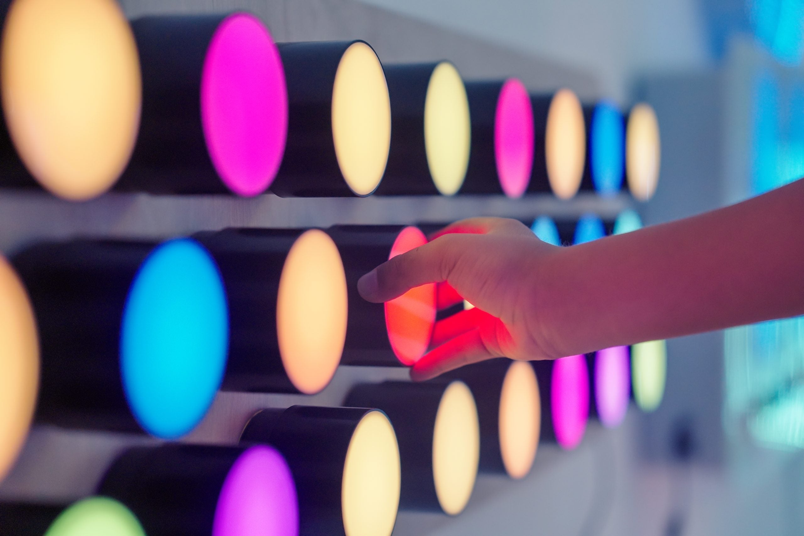Pannello luminoso a spettro cromatico rotante è perfetto per qualsiasi parete. Basta ruotare le manopole e guardare come cambiano colore.