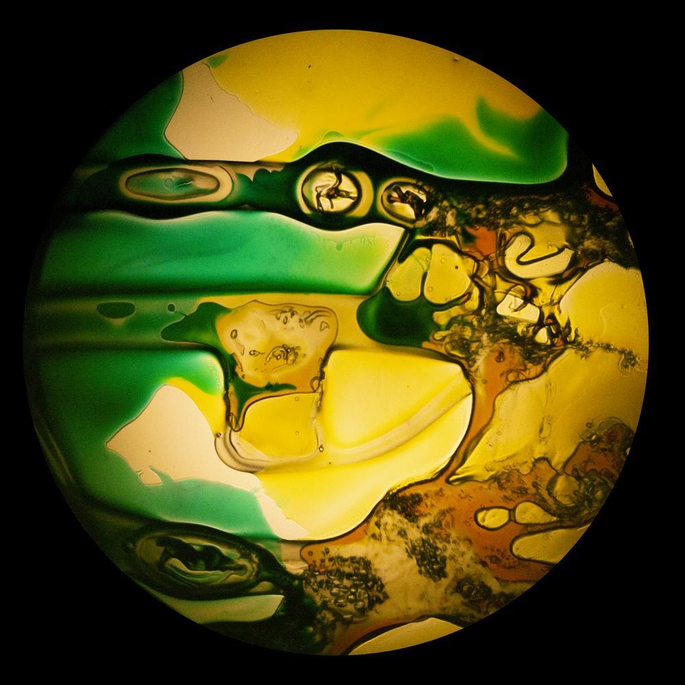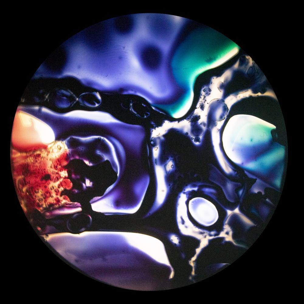 L'olio fluido all'interno del disco cambia continuamente forma, mantenendo viva l'attenzione.