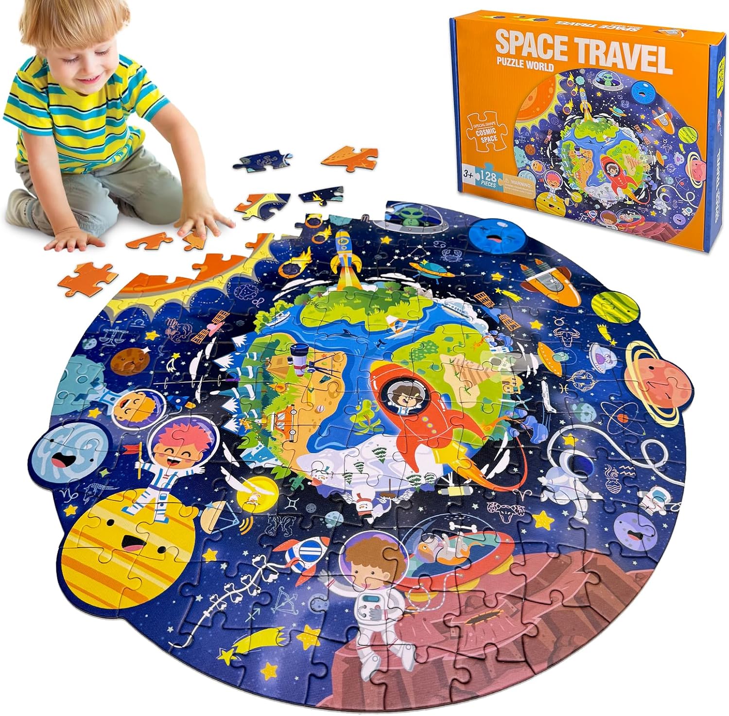 Interessante Viaggi Nello Spazio Puzzle: 128 pezzi di puzzle sono composti da Terra e vari pianeti nell'universo; Fornire un modo divertente per i bambini di conoscere il magico mondo dello spazio