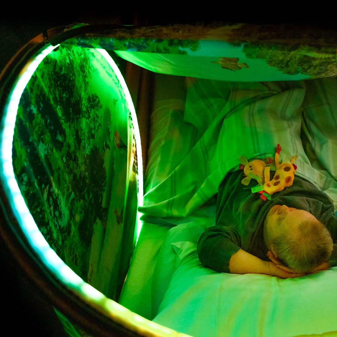 Teli per cambiare l'ambientazione della tenda Snoezelen. E' composto di due parti che vanno a sostituire quella già montata a bordo. La sostituzione è semplice basta staccare, uno alla volta, i teli già montati sulla tenda e sostituirli con quelli della nuova ambientazione della stessa forma di quello staccato.