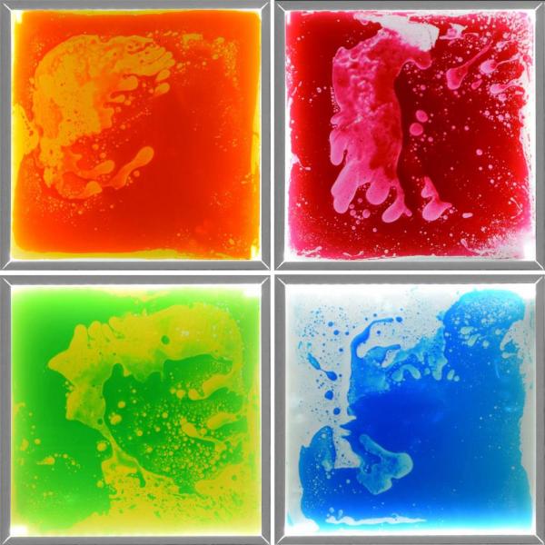 Una grande esperienza visiva che incoraggia tutti a muoversi. Ogni piastrella illuminata è riempita di gel liquido. Sali o muoviti sulla piastrella e assicurati che il gel liquido si sposti secondo uno schema particolare. La piastrella è resistente ai salti e all'uso faticoso di bambini e adulti, nonché al peso di una sedia a rotelle. le piastrelle possono anche essere incorporate in un tappetino in PVC personalizzato. Queste piastrelle sono dotate di antiscivolo sul lato inferiore.