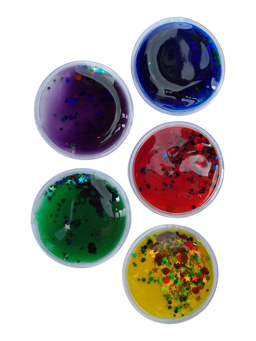 Strizzali, piegali, pressali! Set di 5 cerchi scintillanti. Le persone con autismo sperimentano un'attrazione sensoriale.