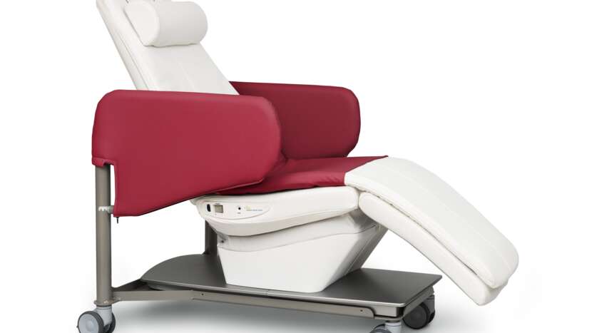 La poltrona Nordic Sensi® viene consegnata su un carrello mobile per un utilizzo flessibile, rendendola ideale per l'impiego in diverse sale per trattamenti; è inoltre dotata di braccioli che aiutano ad aumentare l'accessibilità quando si sale o si scende dalla poltrona.