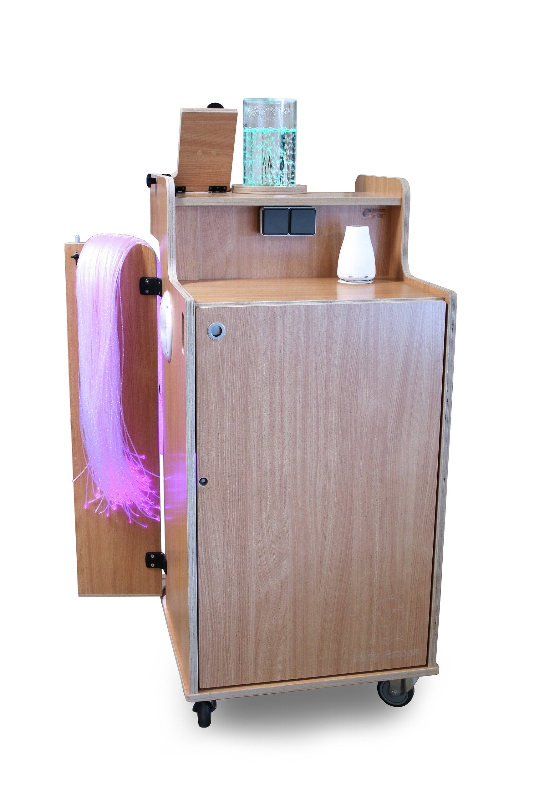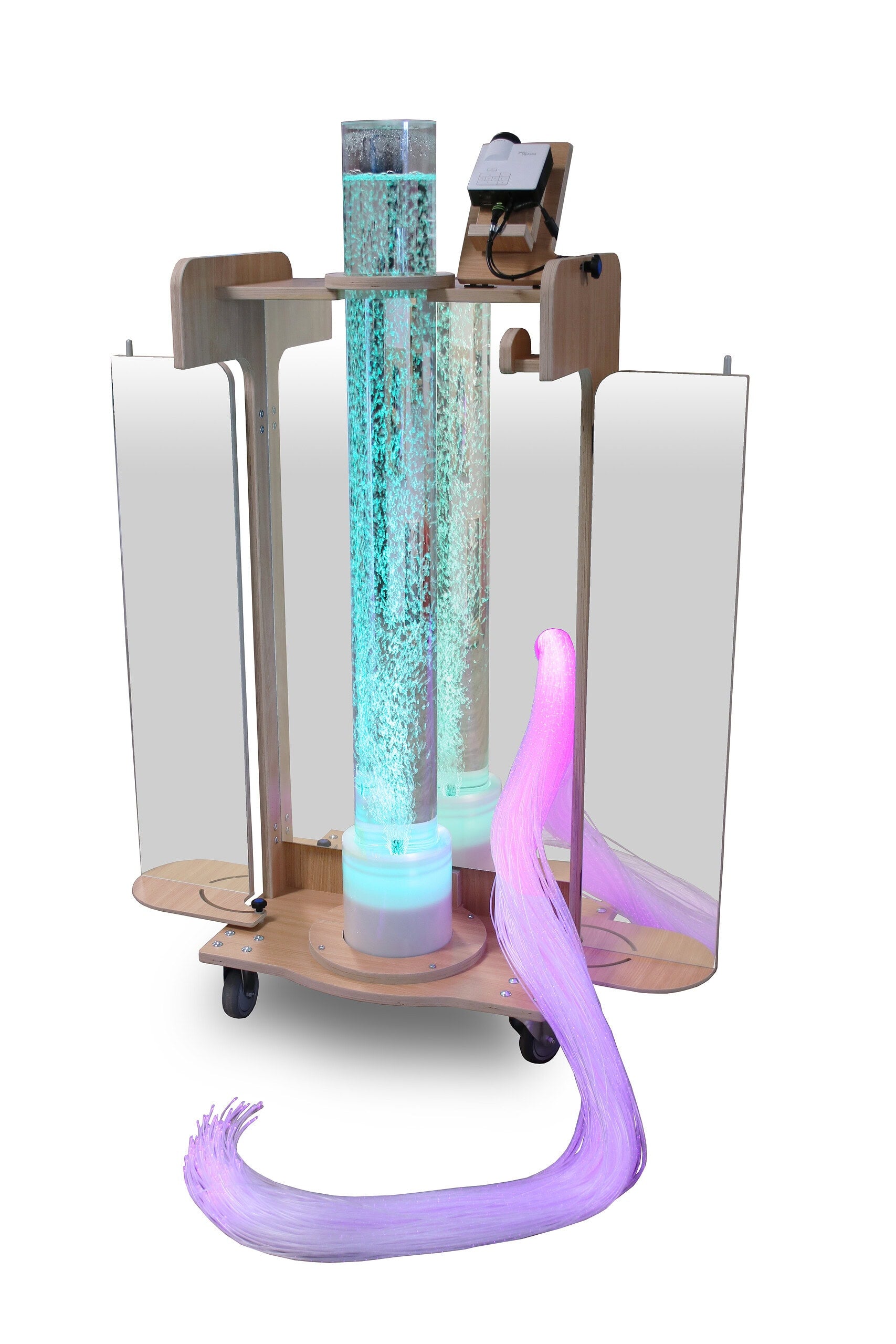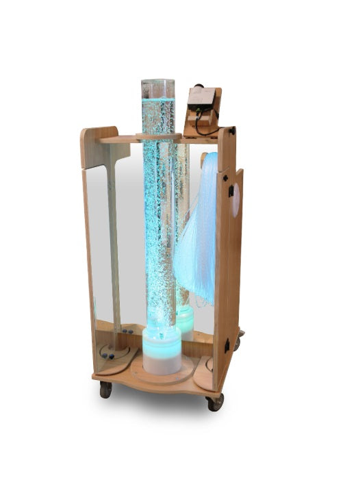 Uno splendido tubo a bolle è circondato da specchi. Il tubo a bolle è regolabile in colore, programma e velocità.